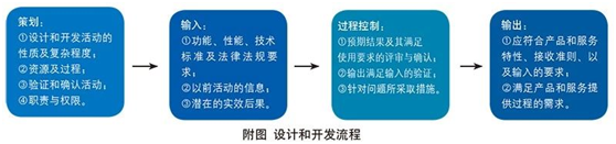 組織應(yīng)建立、實施和保持設(shè)計和開發(fā)的策劃、輸入、過程控制、輸出以及更改的過程,確保后續(xù)的產(chǎn)品和服務(wù)的提供。在設(shè)計和開發(fā)的各個控制階段,主要考慮設(shè)計和開發(fā)活動的性質(zhì)、產(chǎn)品和服務(wù)的具體類型、輸出滿足輸入的要求、提供產(chǎn)品和服務(wù)過程的需求,設(shè)計和開發(fā)流程見附圖。